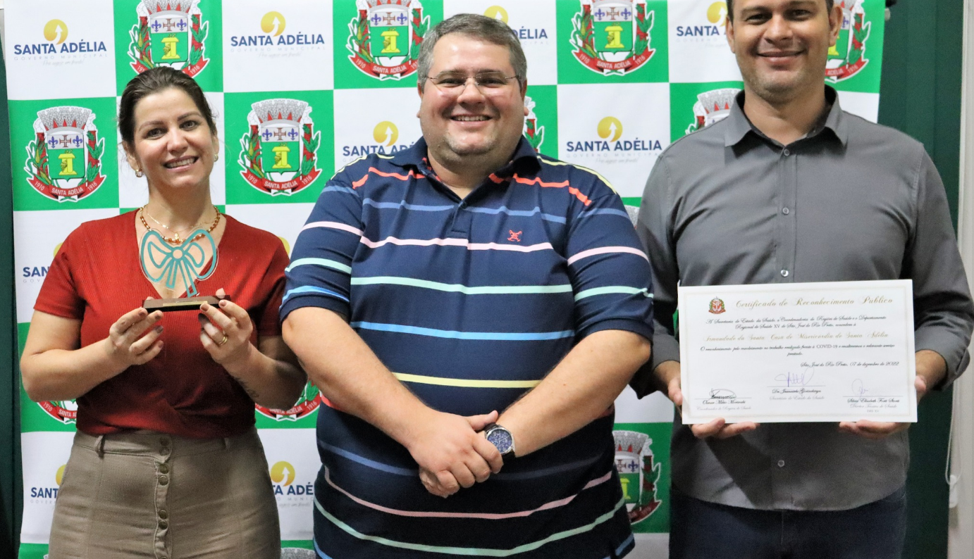 O Governo do Estado de São Paulo, através da Secretaria de Estado da Saúde e do Departamento Regional de Saúde XV de São José do Rio Preto, concederam ao município de Santa Adélia e à Santa Casa de Misericórdia o Certificado de Reconhecimento Público, pelo envolvimento no trabalho realizado frente à Covid-19 e enalteceram o serviço relevante prestado.