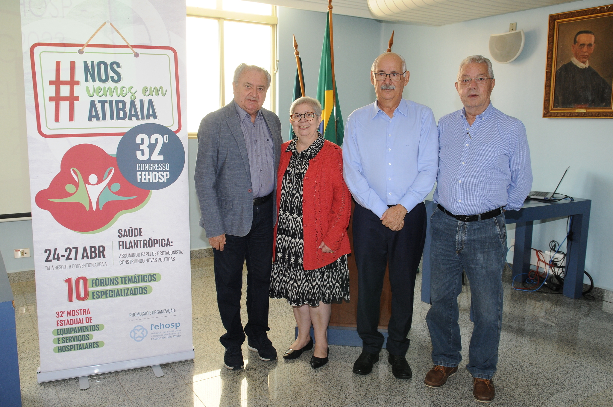 O diretor-presidente da Fehosp, Edson Rogatti, e Maria Fatima da Conceição, gerente do departamento técnico, foram recepcionados pelo provedor da Santa Casa de Piracicaba, João Orlando Pavão, pelo vice-provedor Alexandre Valvano Neto, e a administradora Vanda Petean.