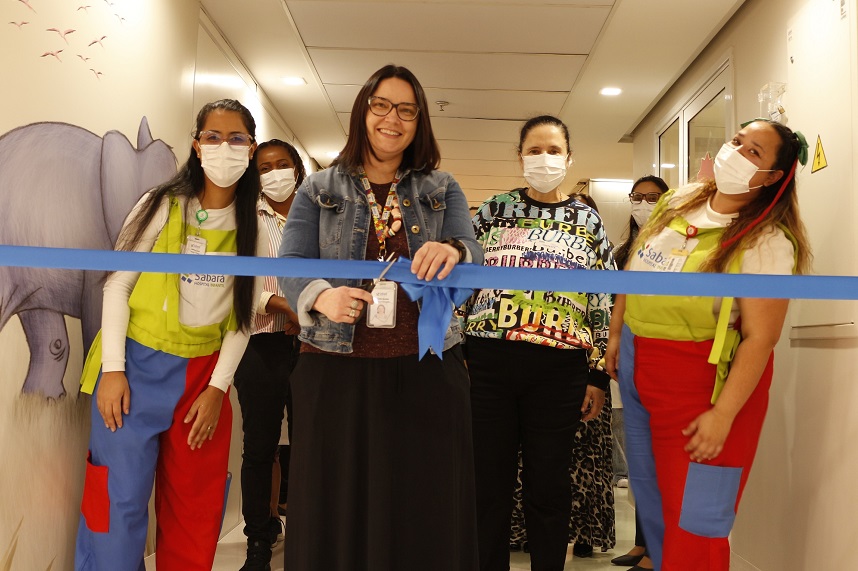 Pensando no bem-estar dos pequenos pacientes que estão internados a brinquedoteca do Sabará foi totalmente reformada, proporcionando um ambiente ainda mais colorido, interativo e agradável para as crianças. O novo projeto começou a ser desenhado em 2022 e recebeu investimentos em torno de R$ 400 mil. Na parte interna foi priorizada a iluminação natural, além de móveis totalmente reformulados. Na área externa, foram utilizados materiais modernos nos pisos e revestimentos chancelados pelo SCIH- Serviço de Controle da Infecção Hospitalar, de fácil limpeza e de acordo com os padrões de qualidade da Instituição. Um pergolado de plantas artificiais traz sombra e amplia o local para a convivência das famílias, evitando o desperdício de água.