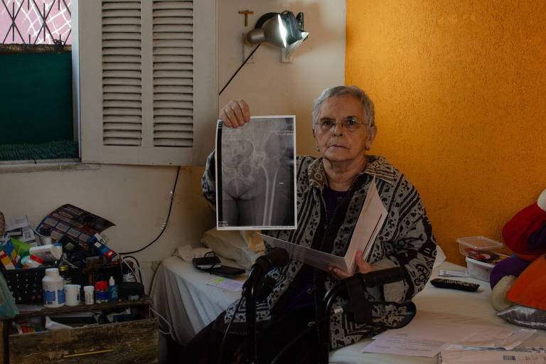 "As dores são insuportáveis. Fico sem sair de casa porque não posso andar", diz a aposentada. "Tenho artrose no quadril, igual o presidente Lula. Mas o presidente é o presidente. Ele pode tomar infiltração, mas eu não tenho dinheiro para isso e tenho de depender do SUS."