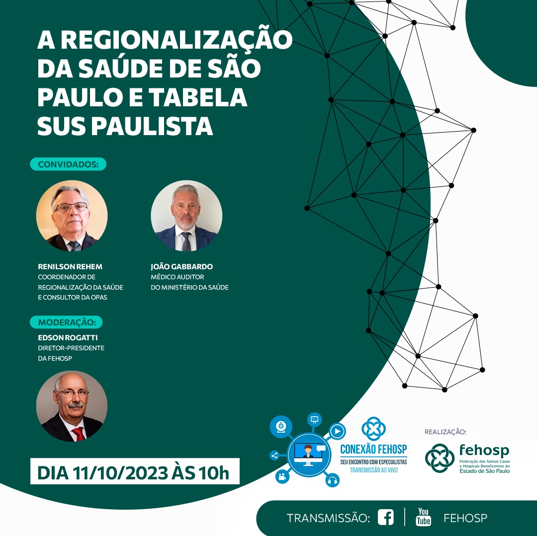 CONEXAO FEHOSP DIA 11/10 - REGIONALIZAÇÃO DA SAÚDE DE SÃO PAULO E A TABELA SUS PAULISTA