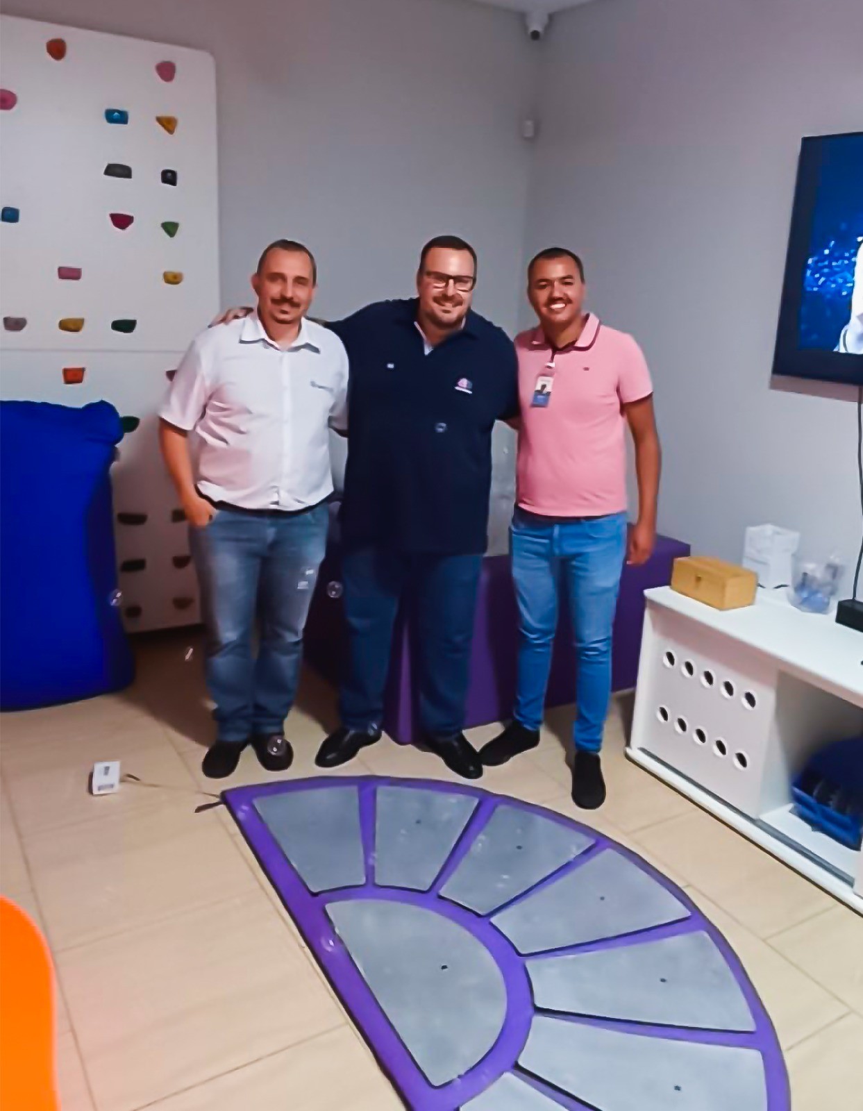 Rodrigo Santoro Petruz, supervisor da Manutenção e Infraestrutura, e Gustavo Sousa de Oliveira, engenheiro civil, representaram o Hospital. Eles conheceram a sala de estimulação, que tem como foco instrumentalizar, integrar e otimizar os diversos tipos de estímulos sensoriais, cognitivos e motores no contexto pedagógico, nas intervenções e terapias.