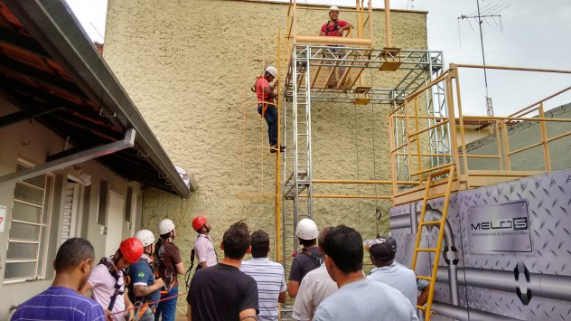 Nos treinamentos foram abordadas noções de proteção em trabalho em altura, como ancoragem e cuidados ao realizar este tipo de atividade, bem como os riscos inerentes a elas e a responsabilidade da empresa e de cada trabalhador com o respeito às normas. Os funcionários foram orientados também sobre a maneira correta de se montar andaimes e submetidos à atividades práticas de utilização do cintos de segurança. "Montamos até uma estrutura no local para servir de exemplo de escalada".