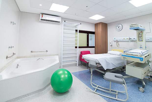 O setor de parto normal conta com banheiras em dois dos quartos, espaldar para alongamento, bolas suíças e iluminação indireta.