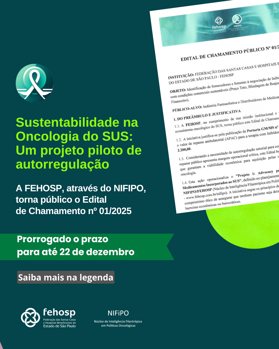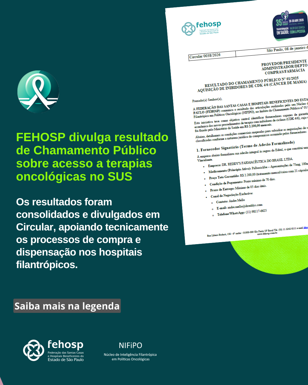 FEHOSP divulga resultado de Chamamento Público sobre acesso a terapias oncológicas no SUS