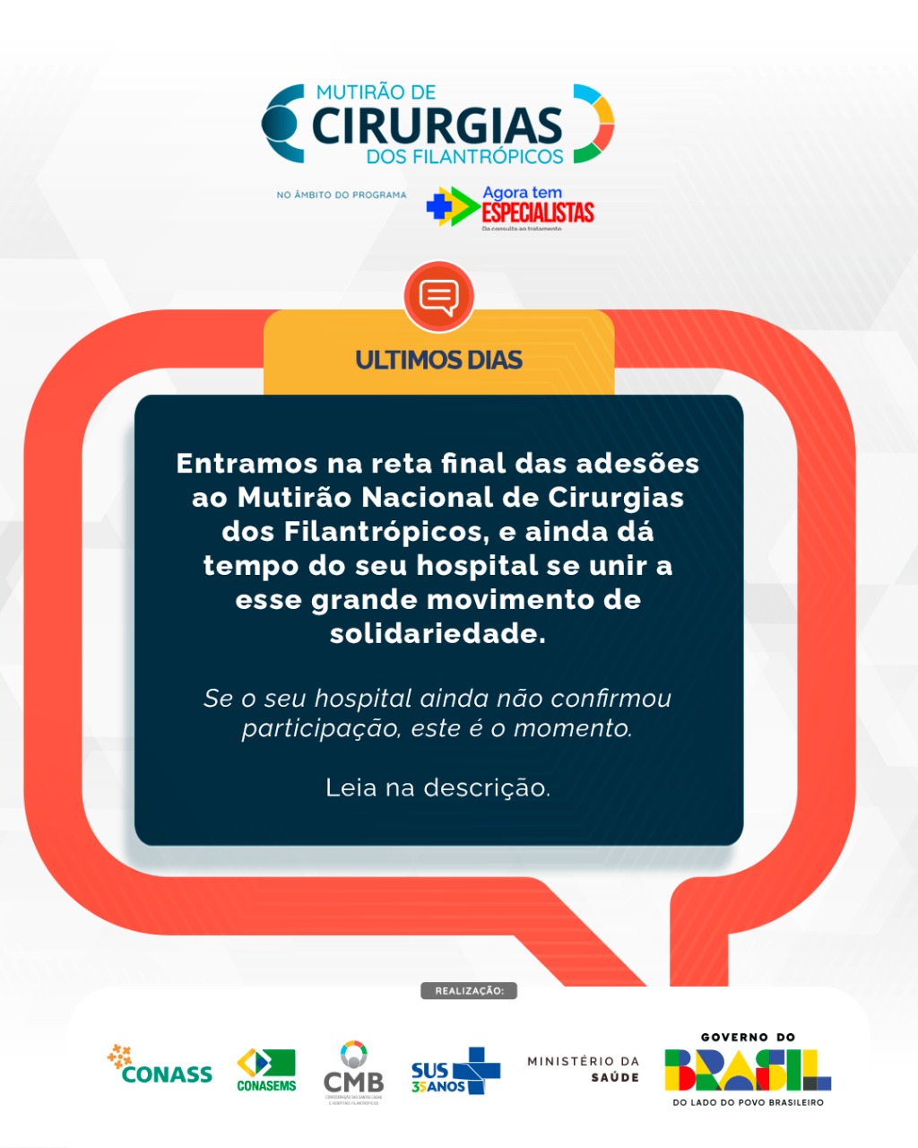 Entramos na reta final das adesões ao Mutirão Nacional de Cirurgias dos Filantrópicos